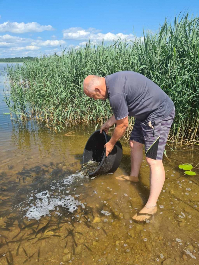 Svātiunes ezerā tika ielaisti 3600 vienvasaras līdaku mazuļi.