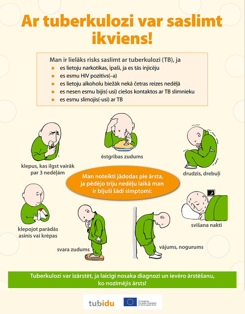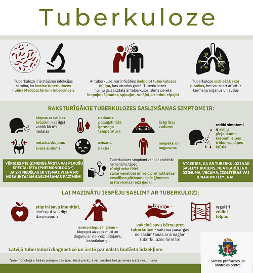 Lai atgādinātu iedzīvotājiem par tuberkulozes profilaksi, simptomiem un ārstēšanas iespējām, Slimību profilakses un kontroles centra speciālisti ir sagatavojuši vairākus vizuālos materiālus.