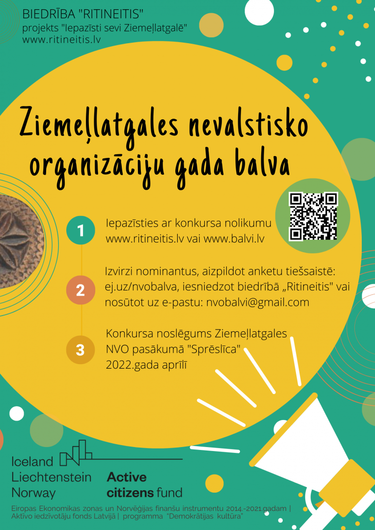 Informācija publicēta ar Islandes, Lihtenšteinas un Norvēģijas atbalstu caur EEZ un Norvēģijas grantu programmu “Aktīvo iedzīvotāju fonds”. Par publikācijas saturu atbild biedrība “RITINEITIS”.
