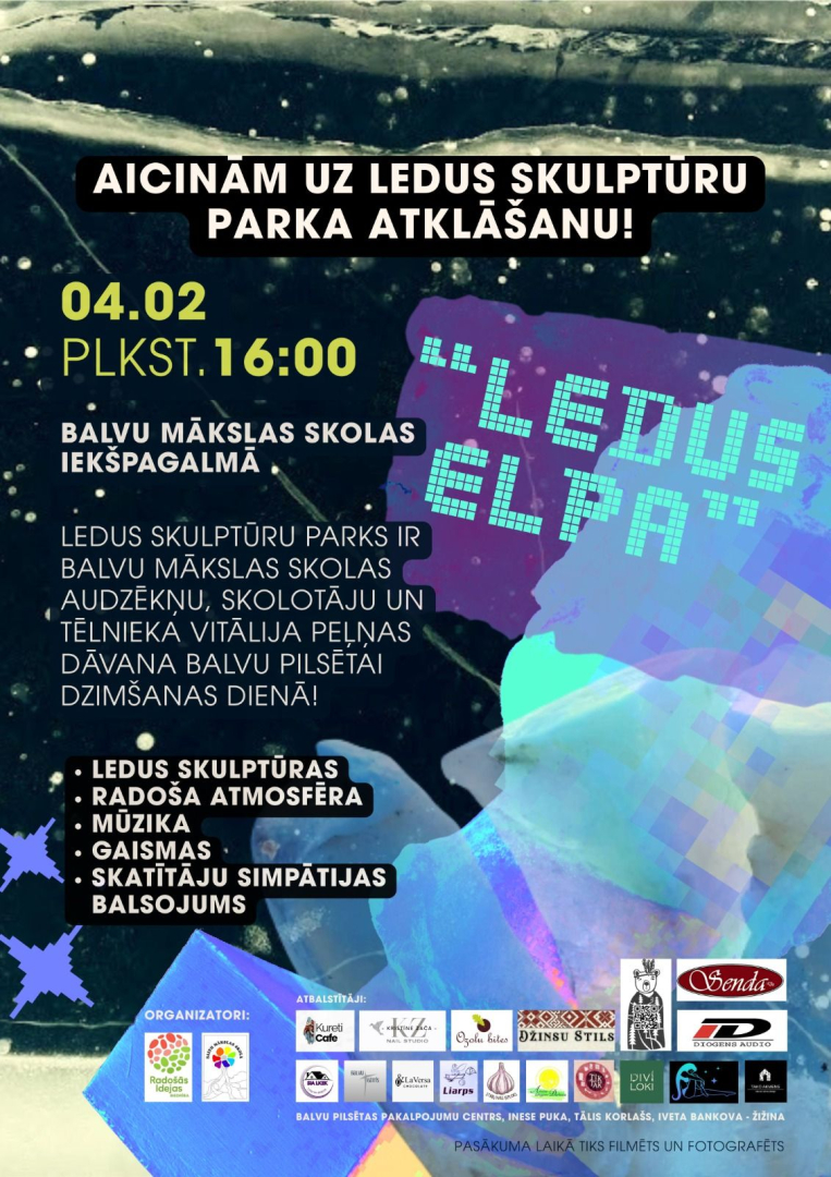 Šajā ziemā Balvu pilsētā top īpašs notikums, kas vieno radošumu, jaunību un mīlestību pret savu vietu – ledus skulptūru parks “Ledus elpa”. To veido Balvu Mākslas skolas audzēkņi kopā ar tēlnieku Vitāliju Peļņu un radošo pedagogu komandu, ieguldot ne tikai prasmes, bet arī sirdi un ticību tam, ka māksla spēj iedvesmot ikdienu.