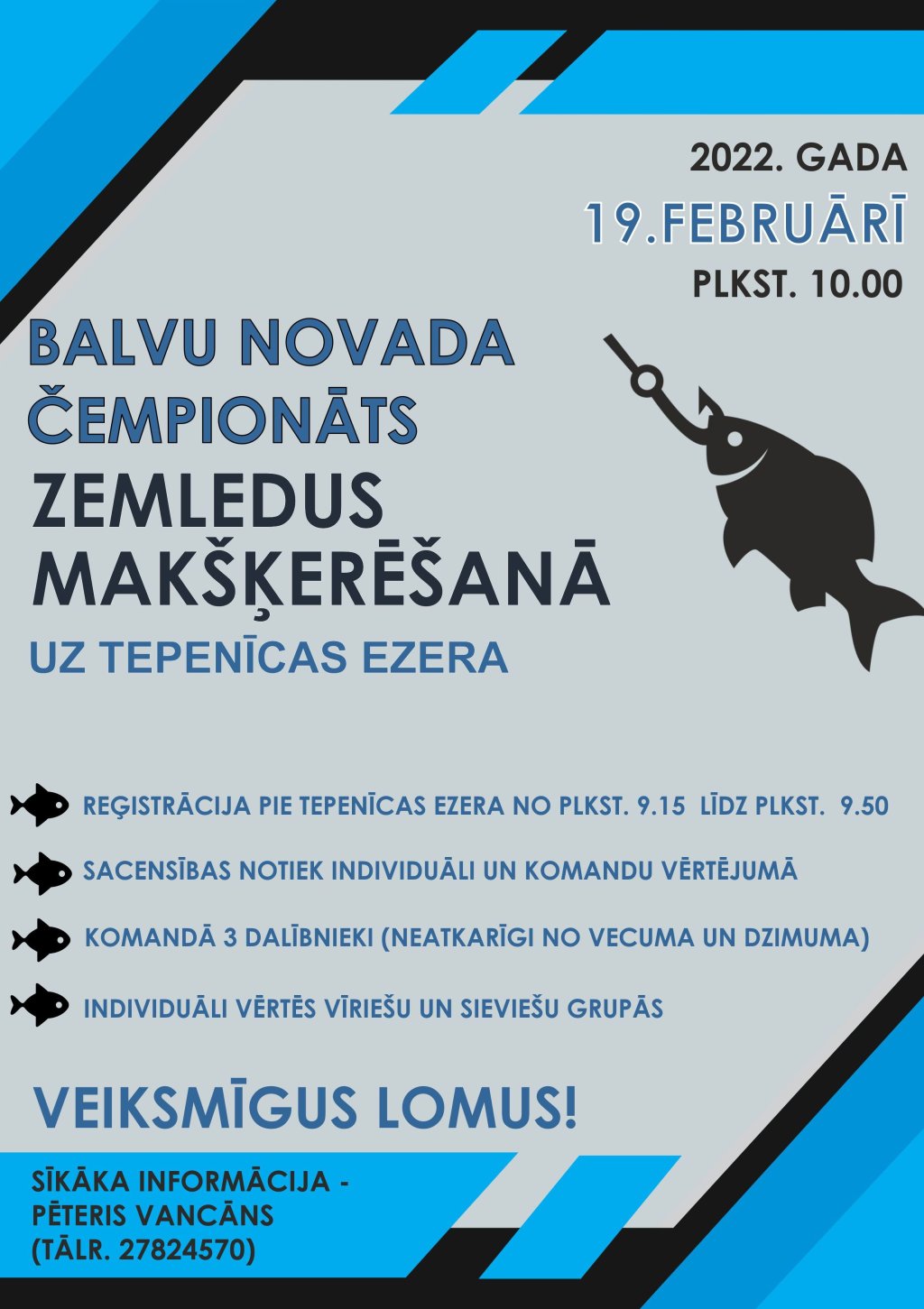 19. februārī no plkst. 10:00 līdz 13:00 notiks Balvu novada čempionāts zemledus makšķerēšanā.