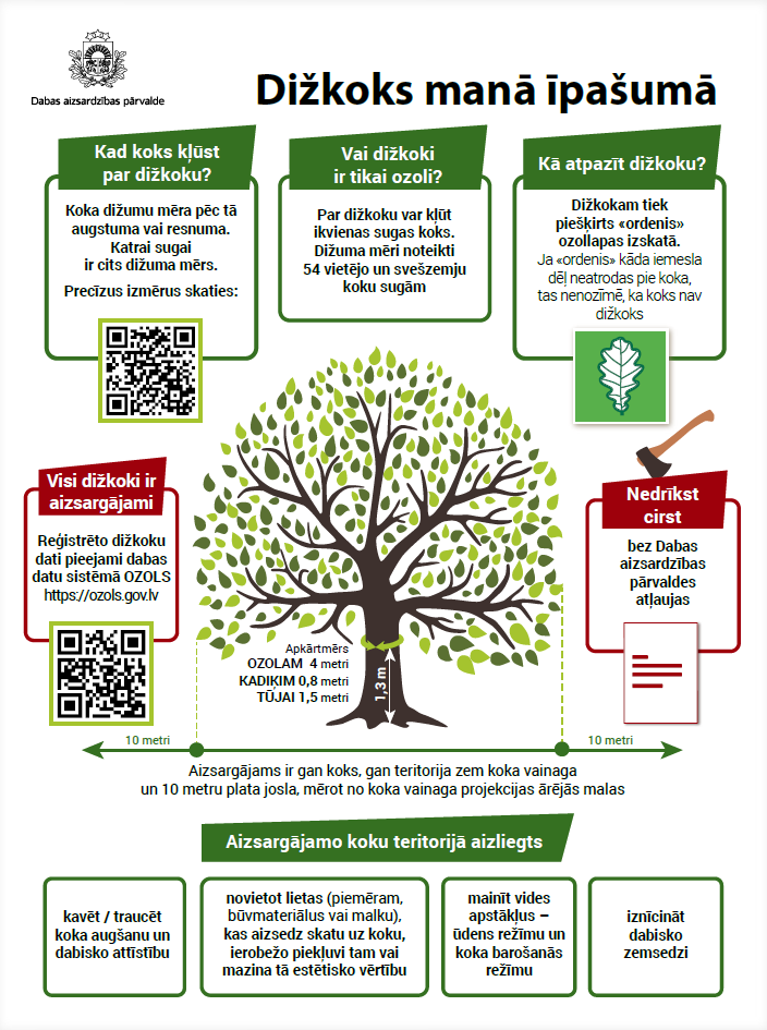 Saskaņā ar spēkā esošo likumdošanu par dižkokiem kļūst visu sugu koki, kas sasnieguši likumā noteiktos izmērus. Uz tiem attiecas visas dižkoku aizsardzības prasības, pat, ja tie nav reģistrēti dabas datu pārvaldības sistēmā “Ozols”, vai iekļauti novadu teritorijas plānojumos.