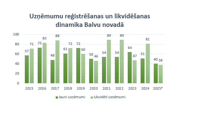 No visiem novadā reģistrētajiem uzņēmumiem, kuri iesnieguši pārskatus par 2024. gadu un pērn guvuši ieņēmumus no saimnieciskās darbības, 53,90% izdevies savu apgrozījumu gada laikā palielināt. Vienlaikus pērn Balvu novadā bija 79 uzņēmumi, kas nav guvuši ieņēmumus no saimnieciskās darbības, savā pārskatā pie apgrozījuma norādot 0 EUR.