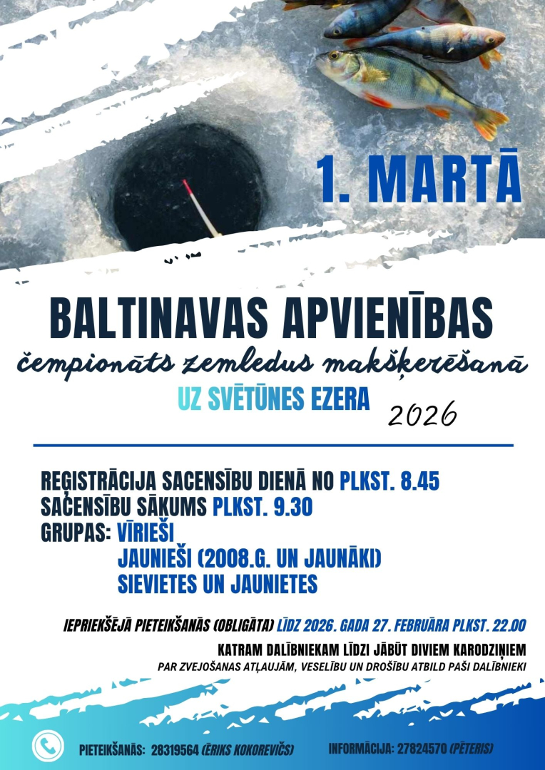 1. martā plkst. 9.30 uz Svētūnes ezera Baltinavas apvienības čempionāts zemledus makšķerēšanā.