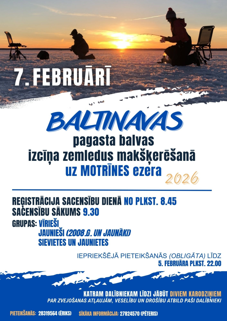 7. februārī plkst 9.30 uz Motrīnes ezera Baltinavas pagasta balvas izcīņa zemledus makšķerēšanā.