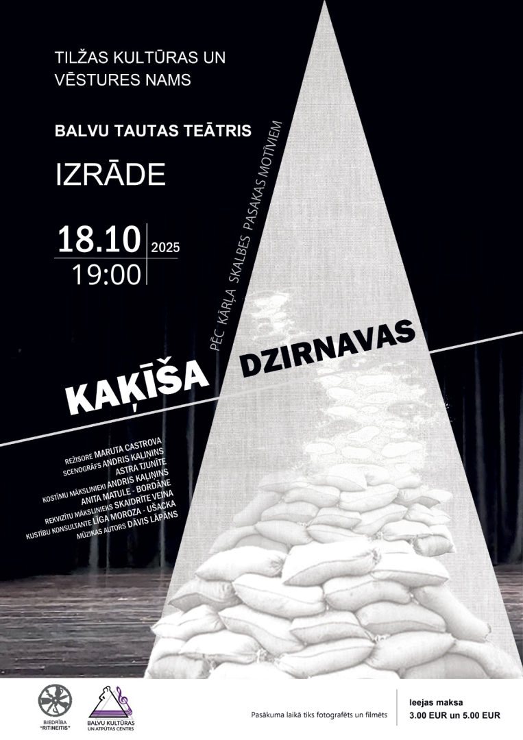 18. oktobrī plkst. 19.00 Tilžas Kultūras un vēstures namā Balvu Tautas teātra viesizrāde pēc Kārļa Skalbes pasakas motīviem ''Kaķīša dzirnavas'', režisore Maruta Castrova. Izrāde iestudēta 2023. gada nogalē, un ir guvusi nedalītas skatītāju simpātijas. Lai gan iestudējums vairāk domāts pieaugušo auditorijai, skatītāju pulkā mīļi gaidīti arī mazi un lieli bērni, jo tieši viņi vislabāk uztver, kas lugā ir labi un kas slikti. ''Kaķīša dzirnavas'' mums māca nepadoties, vienmēr ticēt labajam un mācīties piedot.