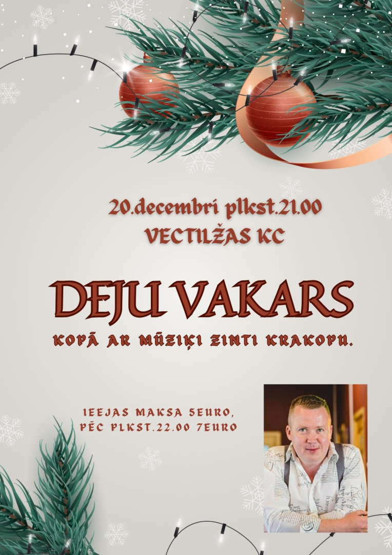 20. decembrī plkst. 21.00 Vectilžas sporta un atpūtas centrā Deju vakars kopā ar mūziķi Zinti Krakopu.