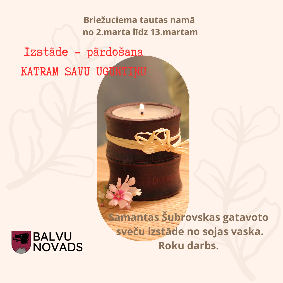 • No 2. marta Briežuciema Tautas namā skatāma Samantas Šubrovskas gatavoto sveču izstāde "Katram savu uguntiņu".