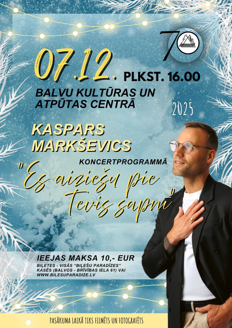 7. decembrī plkst. 16.00 Balvu Kultūras un atpūtas centrā Kaspara Markševica koncertprogramma "Es aiziešu pie Tevis sapnī".