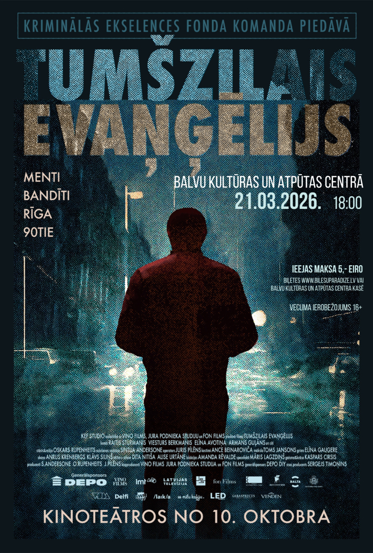 21. martā plkst.18.00 Balvu Kultūras un atpūtas centrā Krimināldrāma "Tumšzilais Evaņģēlijs".