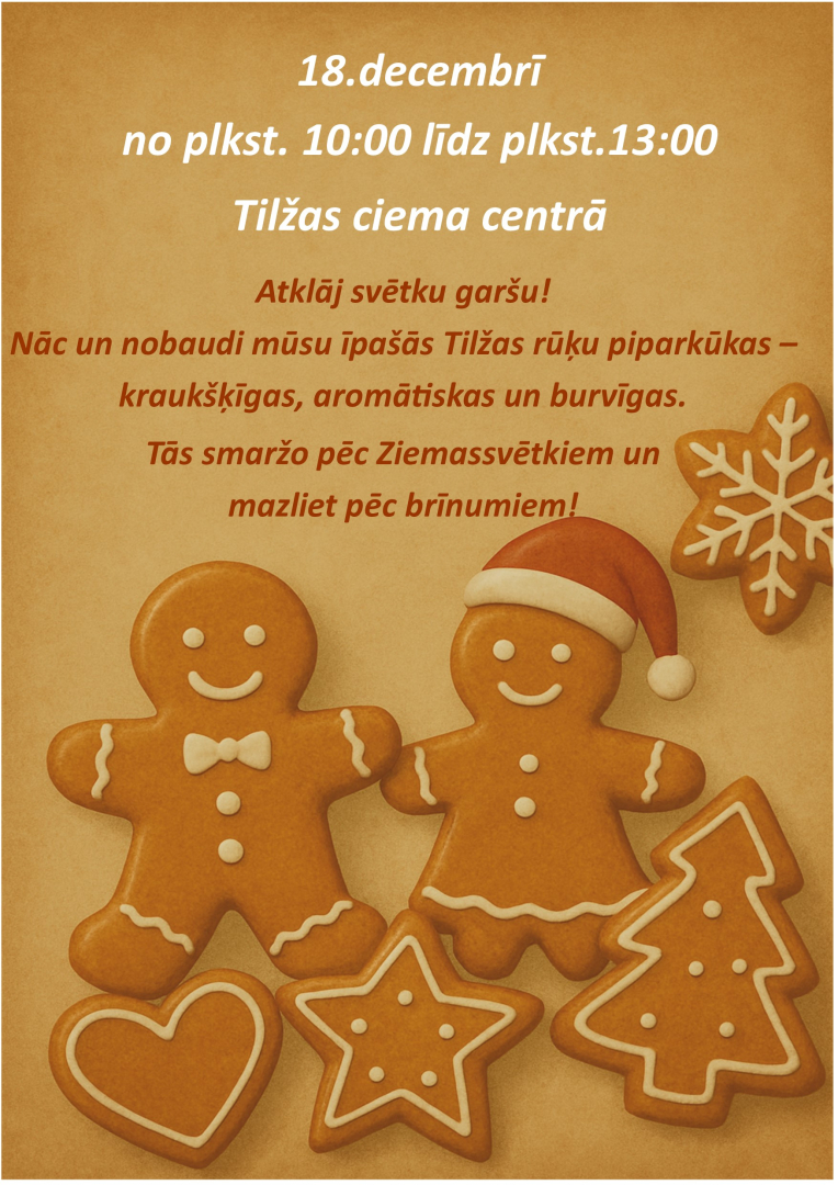 18. decembrī plkst. 10.00 Tilžas ciema centrā rūķi aicina uz piparkūku cepšanu "Atklāj svētku garšu".