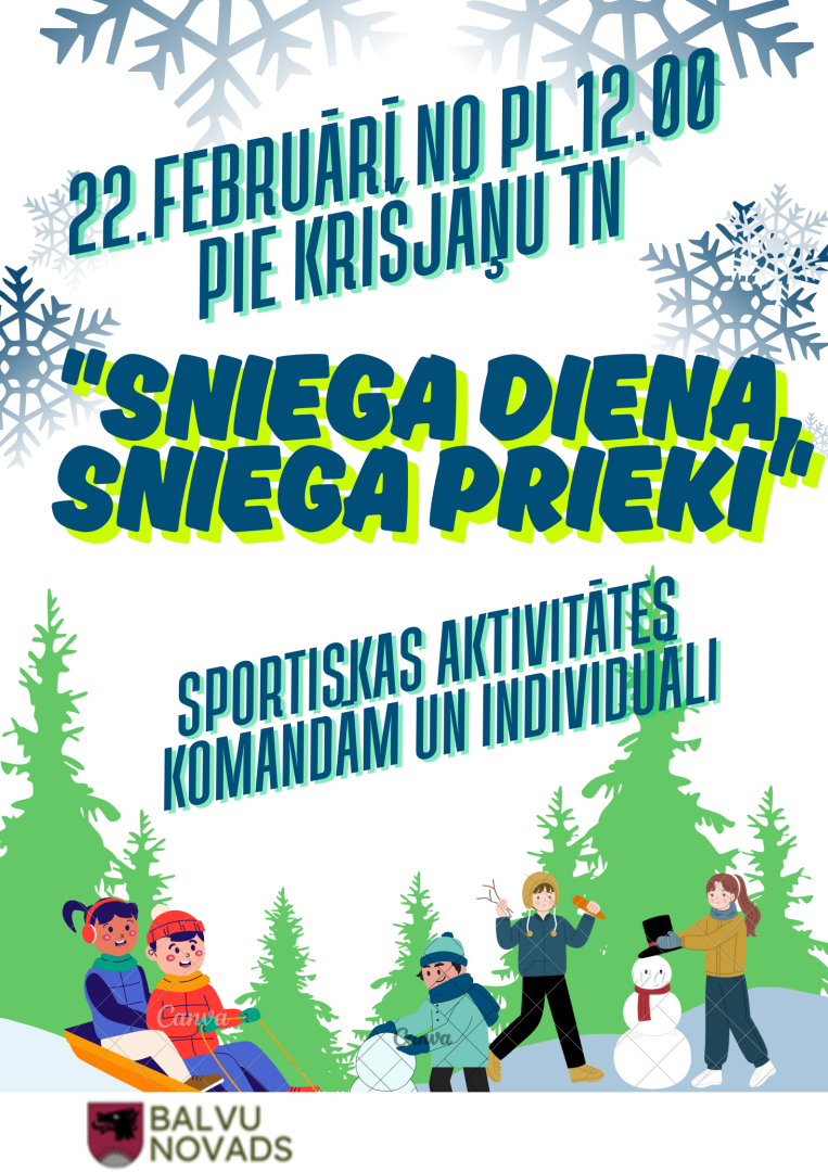 22. februārī plkst. 12.00 pie Krišjāņu Tautas nama sportiskas aktivitātes komandām un individuāli "Sniega diena sniega prieki".