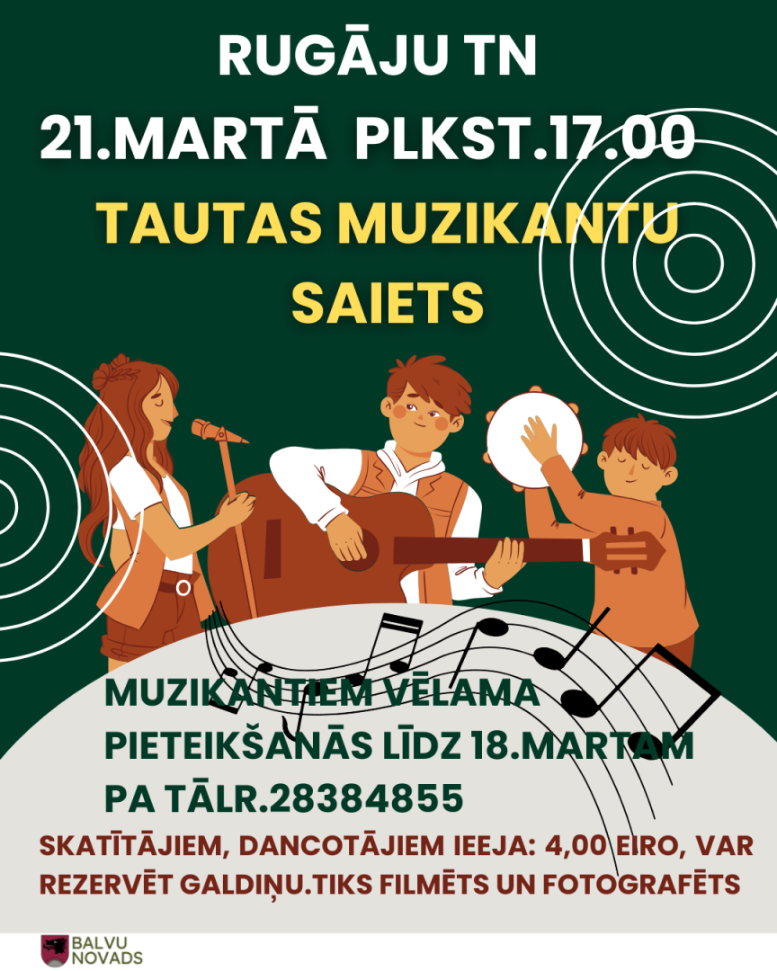 21. martā plkst. 17.00 Rugāju Tautas namā - Tautas muzikantu saiets.