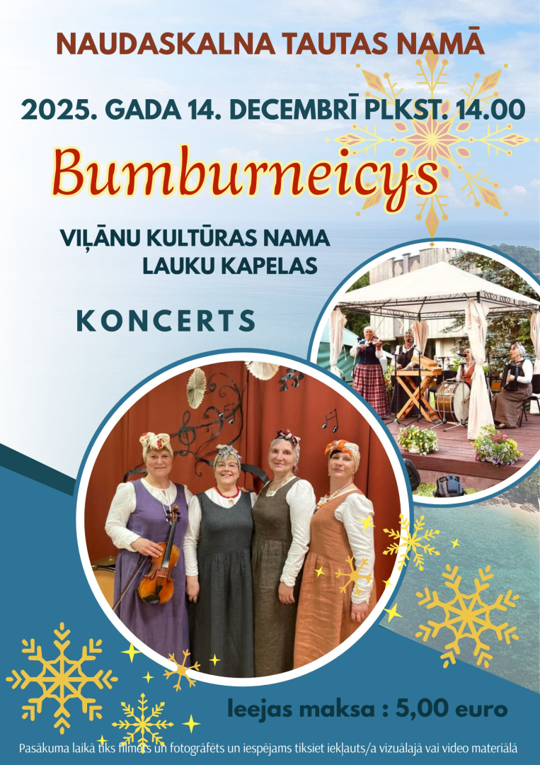 14. decembrī plkst. 14.00 Naudaskalna Tautas namā notiks Viļānu kultūras nama kapelas "Bumburneicys" koncerts.