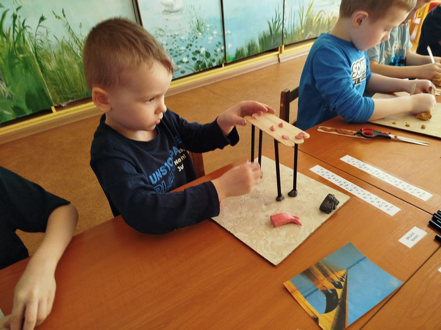 Bērni ne tikai klausījās, bet arī aktīvi darbojās paši, veidojot tiltus no dažādiem materiāliem - saldējuma kociņiem, salmiņiem, plastilīna un māla. Pēc tiltu izvēles sekoja praktiska eksperimentēšana - bērni ar dažādu rotaļlietu palīdzību pārbaudīja, cik lielu svaru viņu uzbūvētie tilti var izturēt. Tas radīja lielu interesi un aizrautību, ko katrs vēlējās noskaidrot, cik stiprs ir viņa būvētais tilts. Šāda veida aktivitātes palīdz bērniem labāk izprast pasauli sev apkārt, attīsta domāšanu un sadarbības prasmes.
